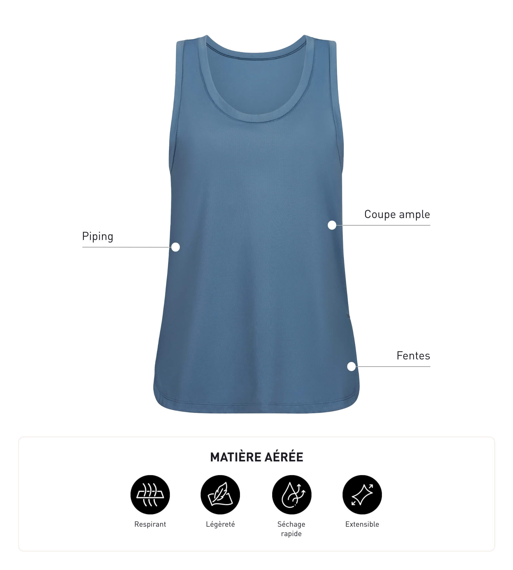 Entdecken Sie absolute Leichtigkeit mit dem langen Sport-Tanktop Dim Move für Damen aus Viskose in Jean Blue!