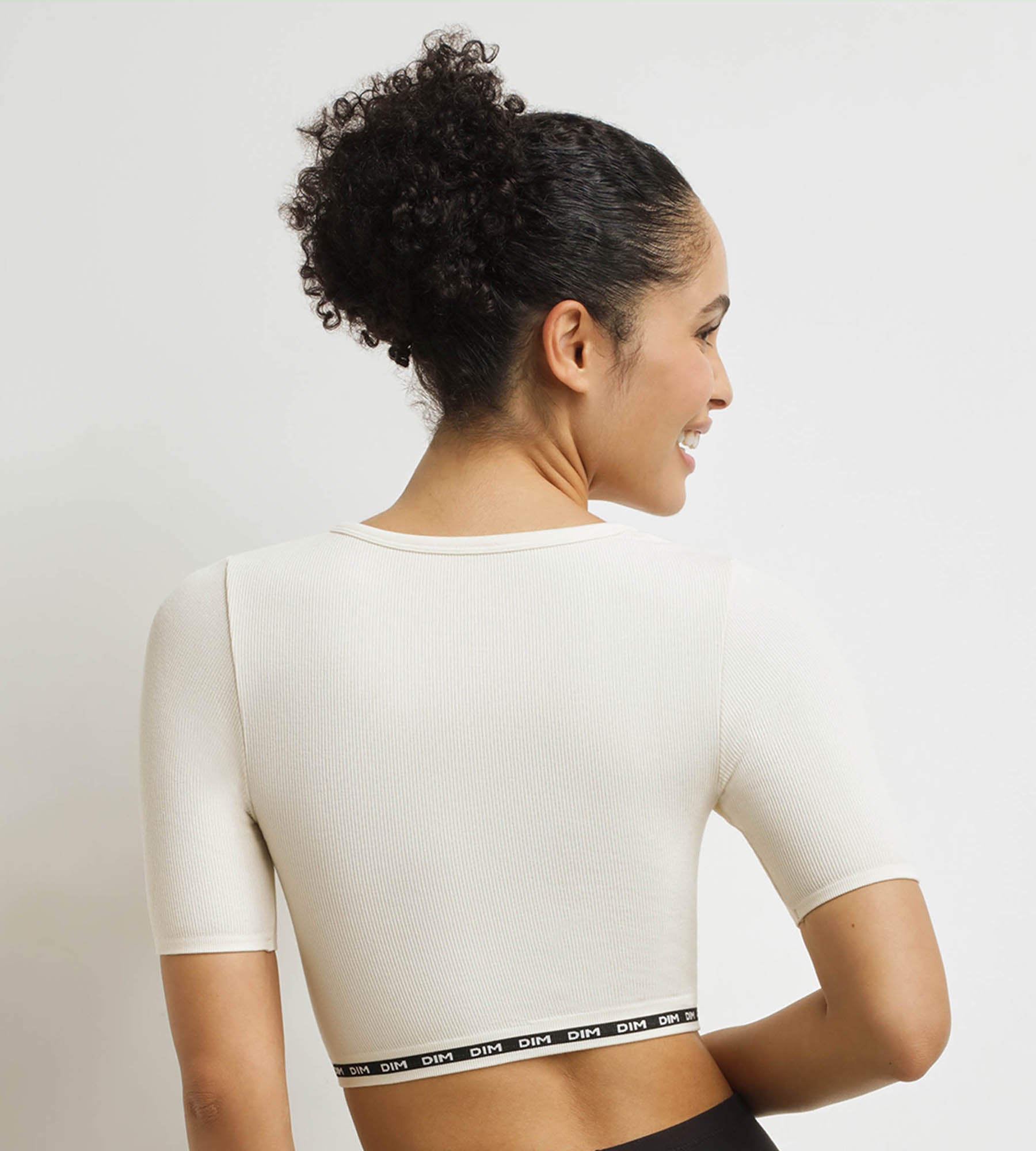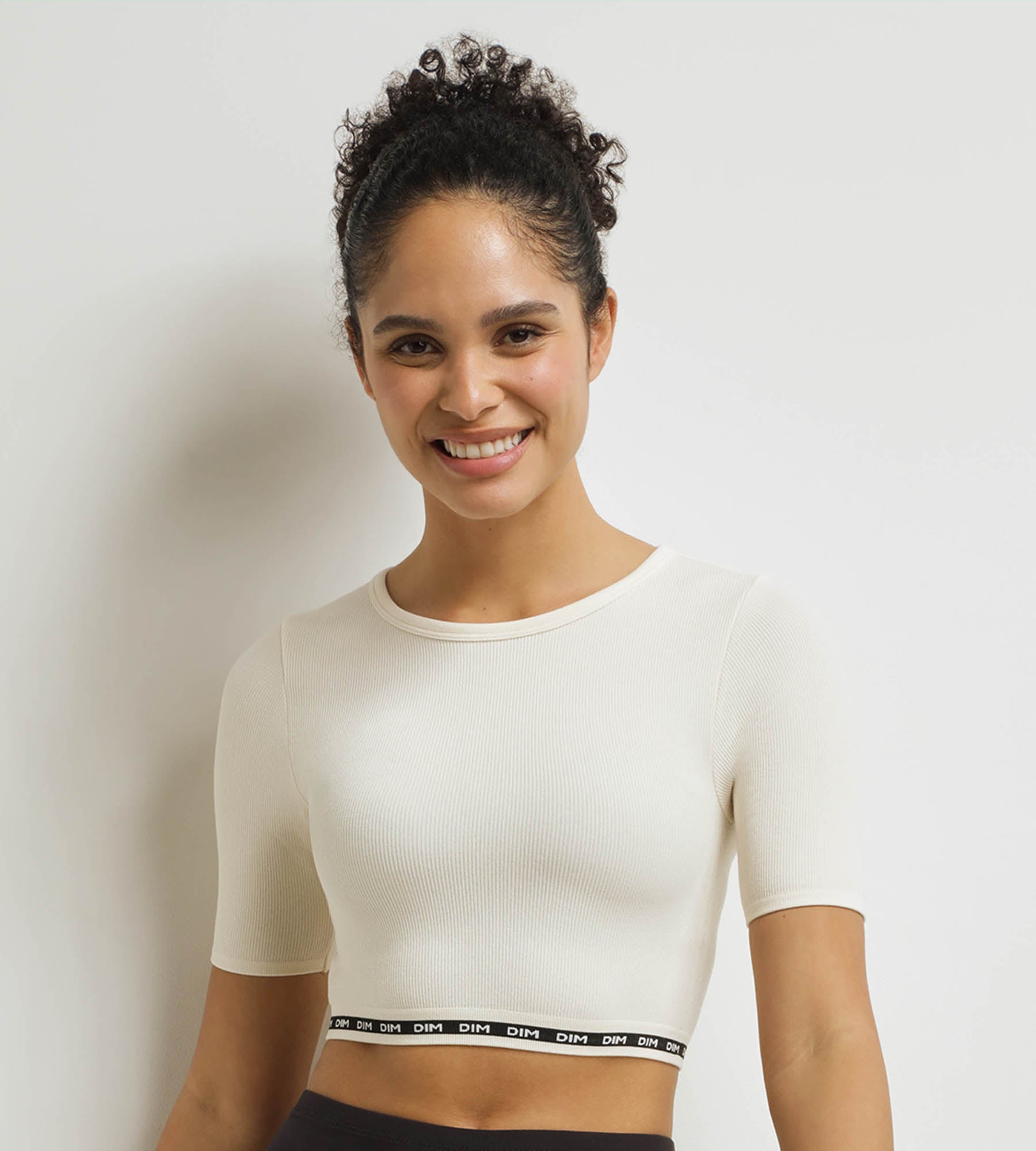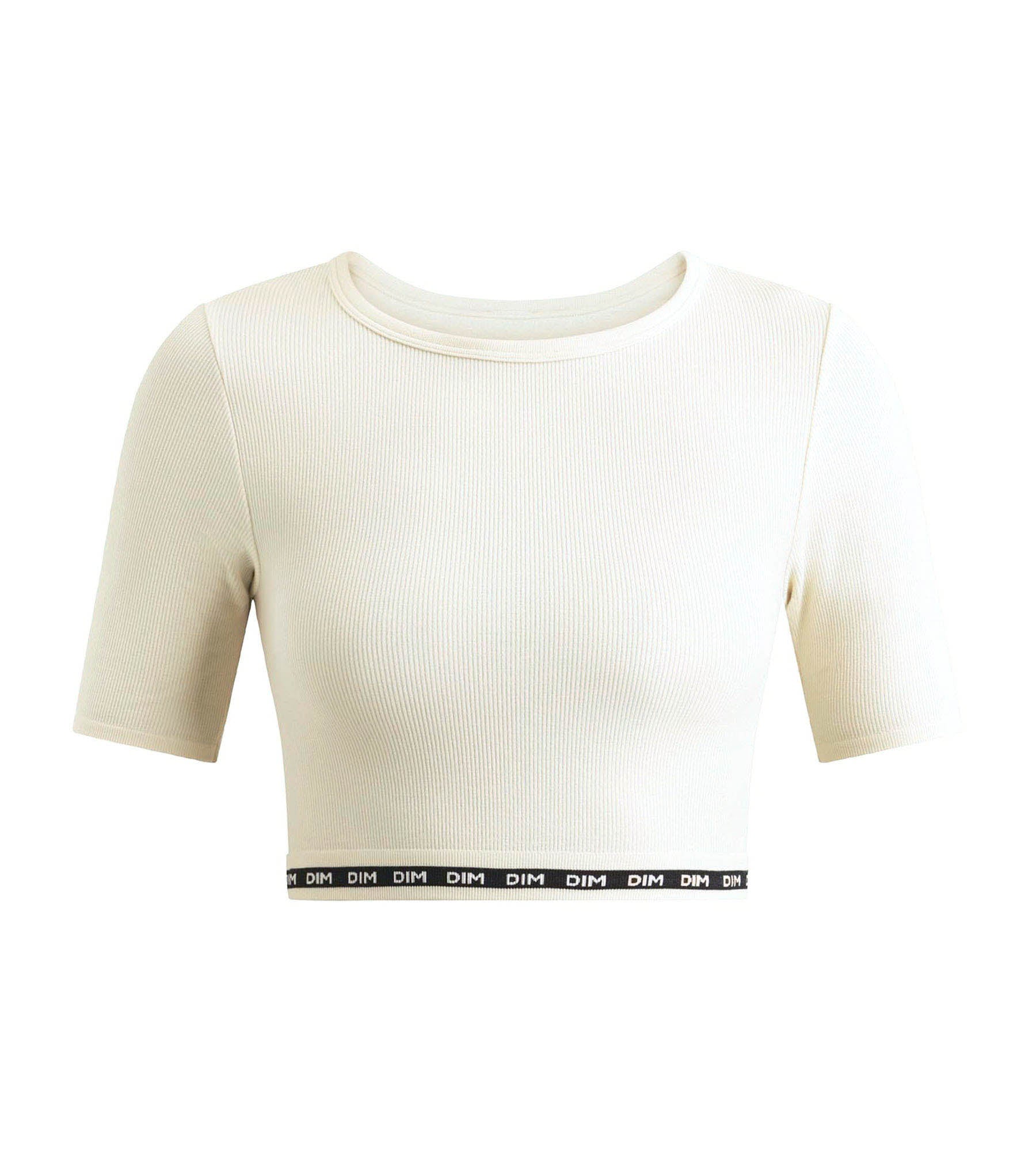 Nahtloses Damen-Top aus gerippter Mikrofaser Beige - Dim Icons Seamless