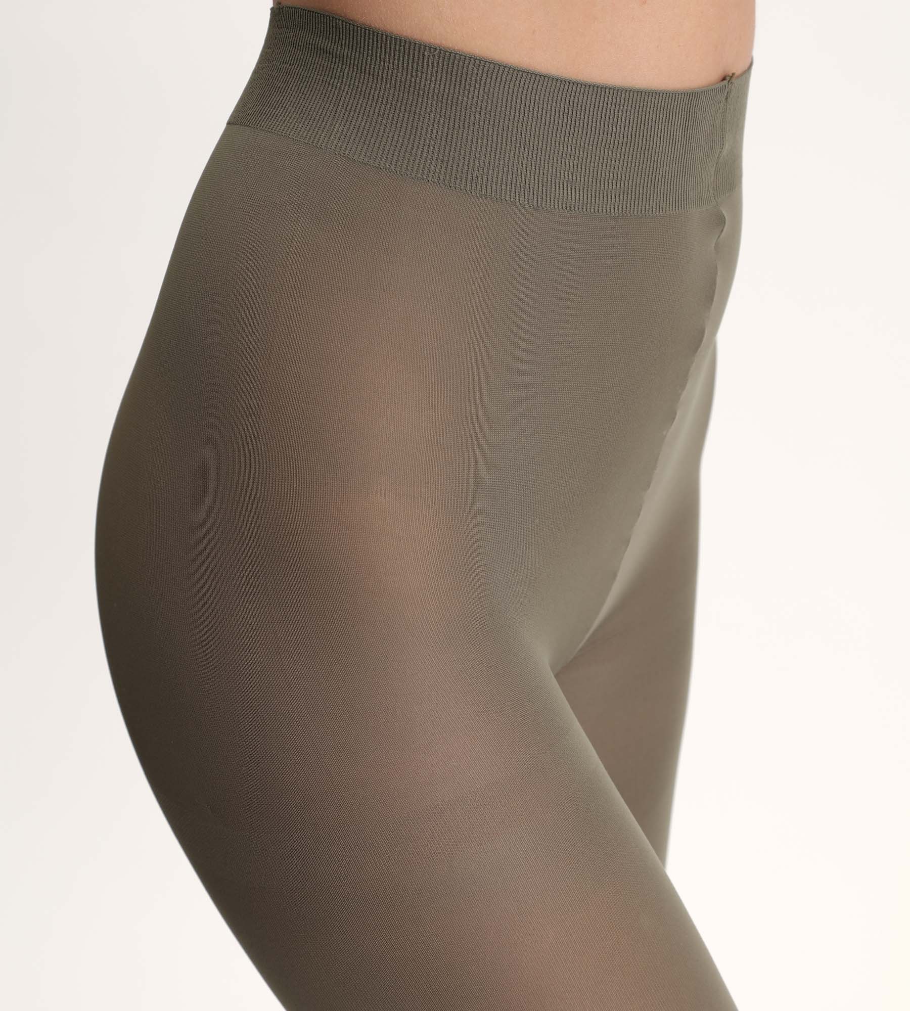 Ein selbstbewusster Stil und ein sanfter Komfort mit der blickdichten 50D DIM Strumpfhose aus khakifarbener Mikrofaser!