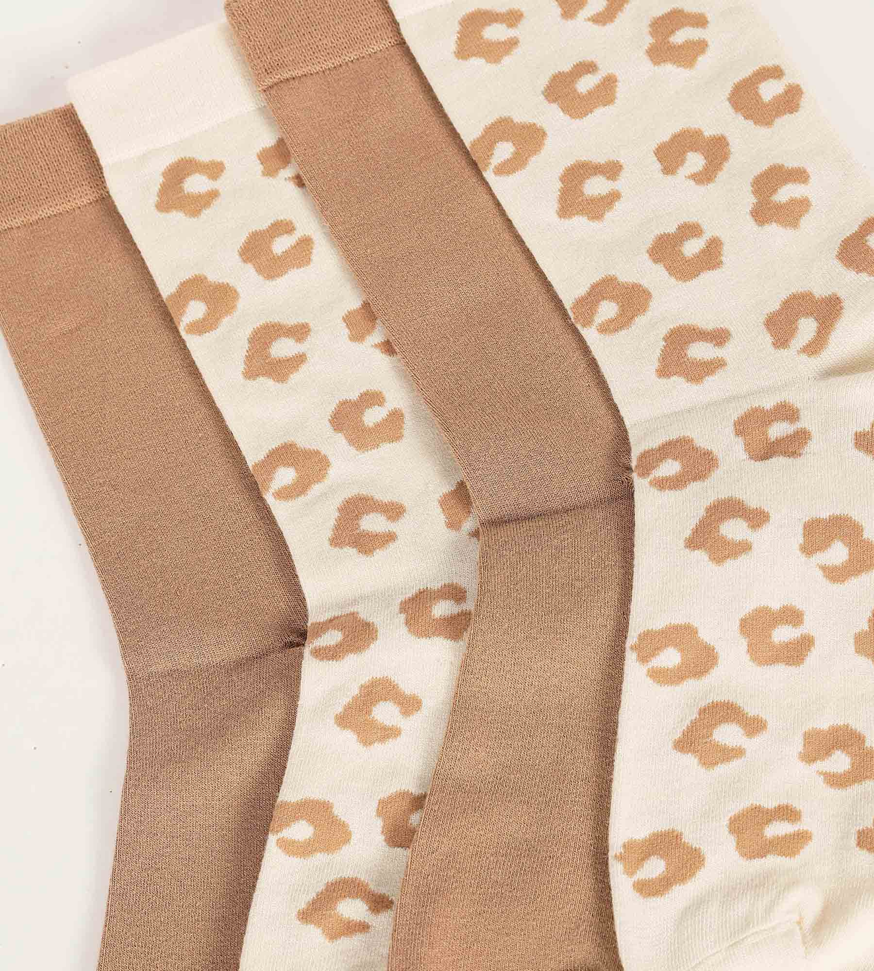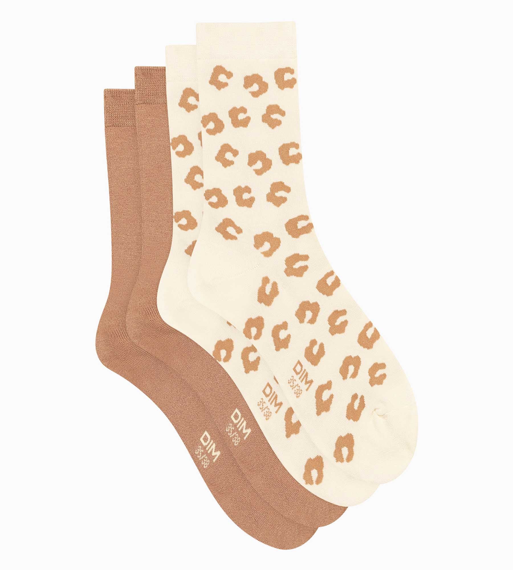 Kombinieren Sie Komfort und Modernität mit dem 2er-Pack Damensocken mit Crème Dim Bambou Blumenprints!