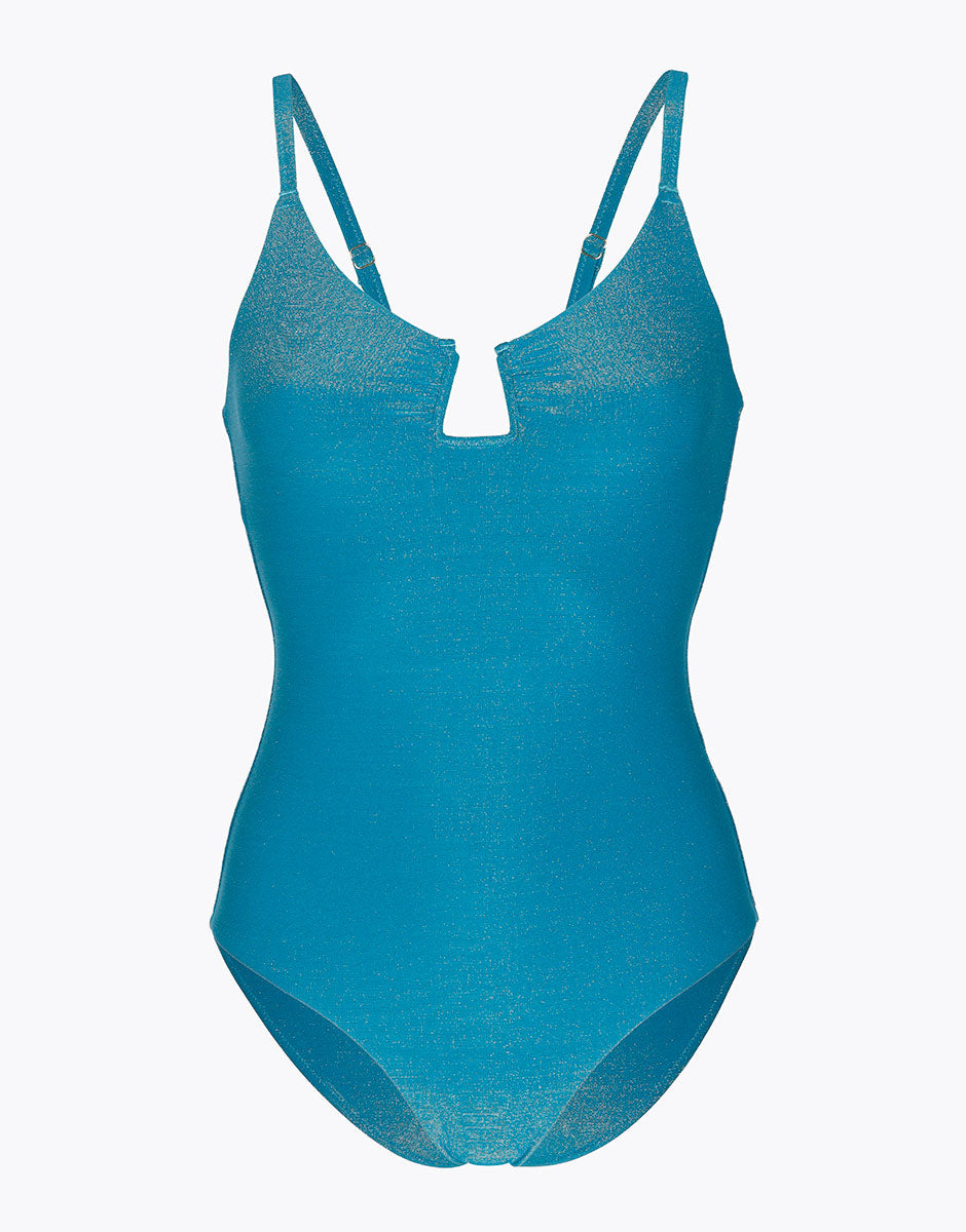 Petrolblauer Badeanzug Plain Lurex aus Mikrofaser in Ottanio