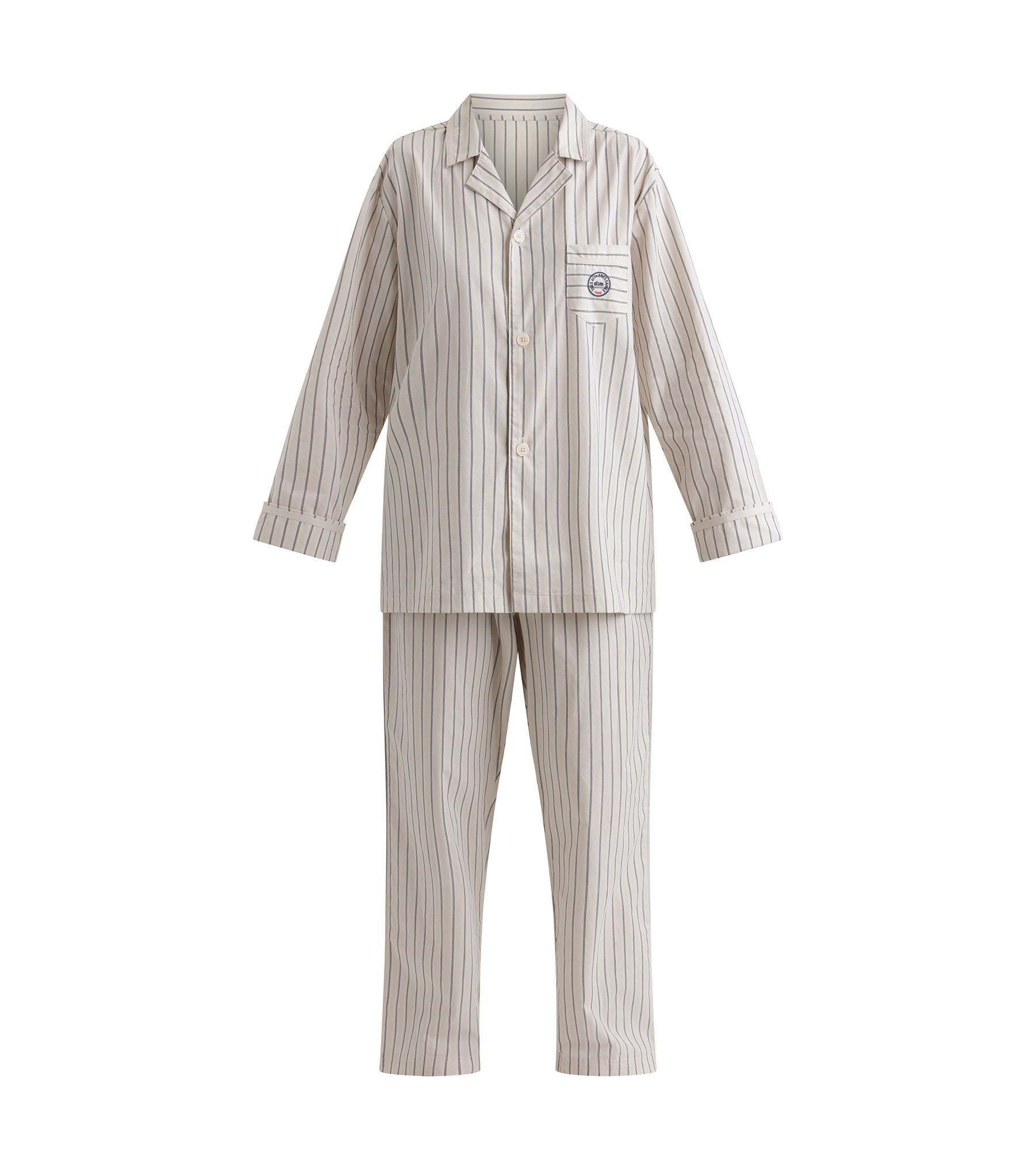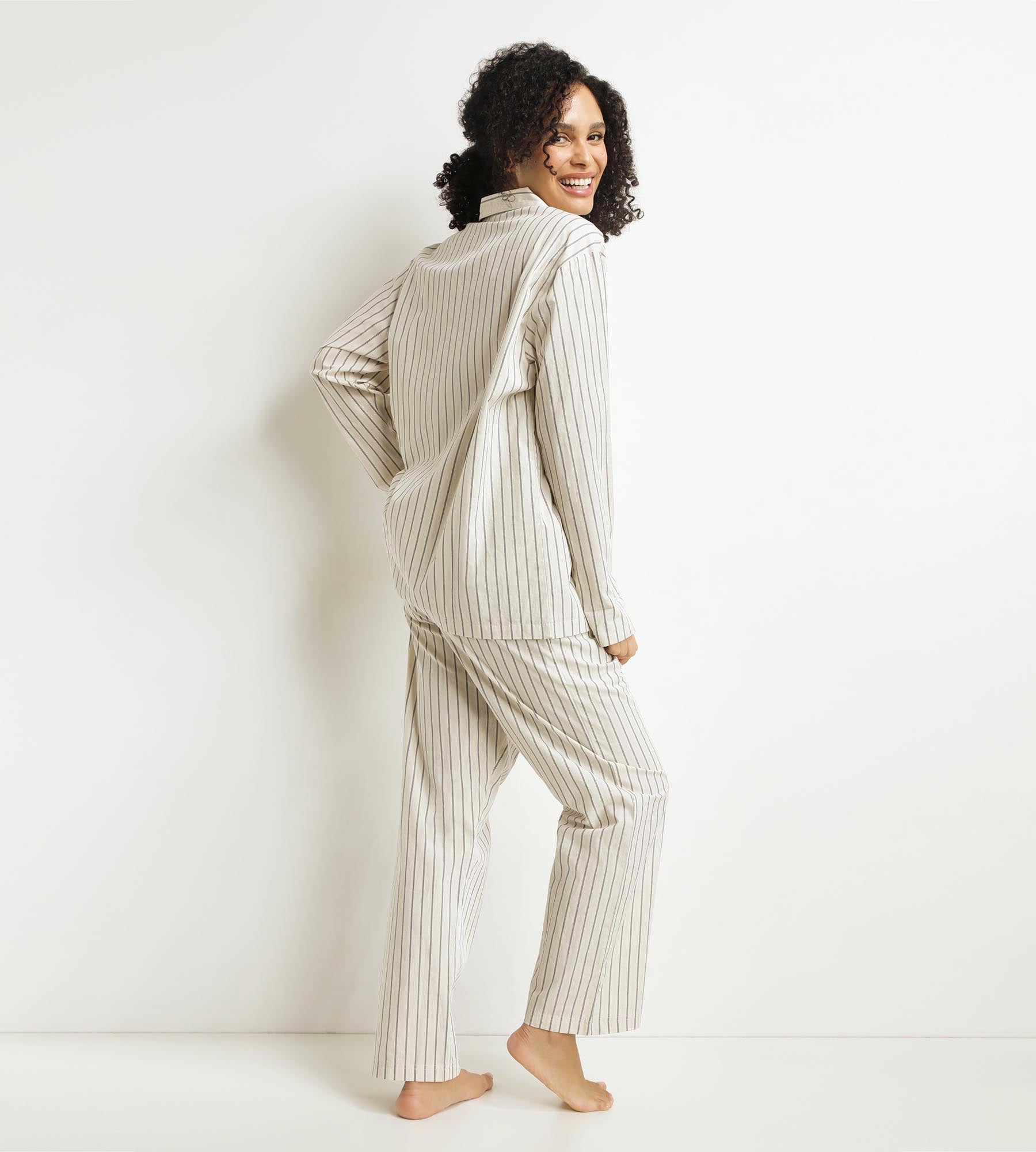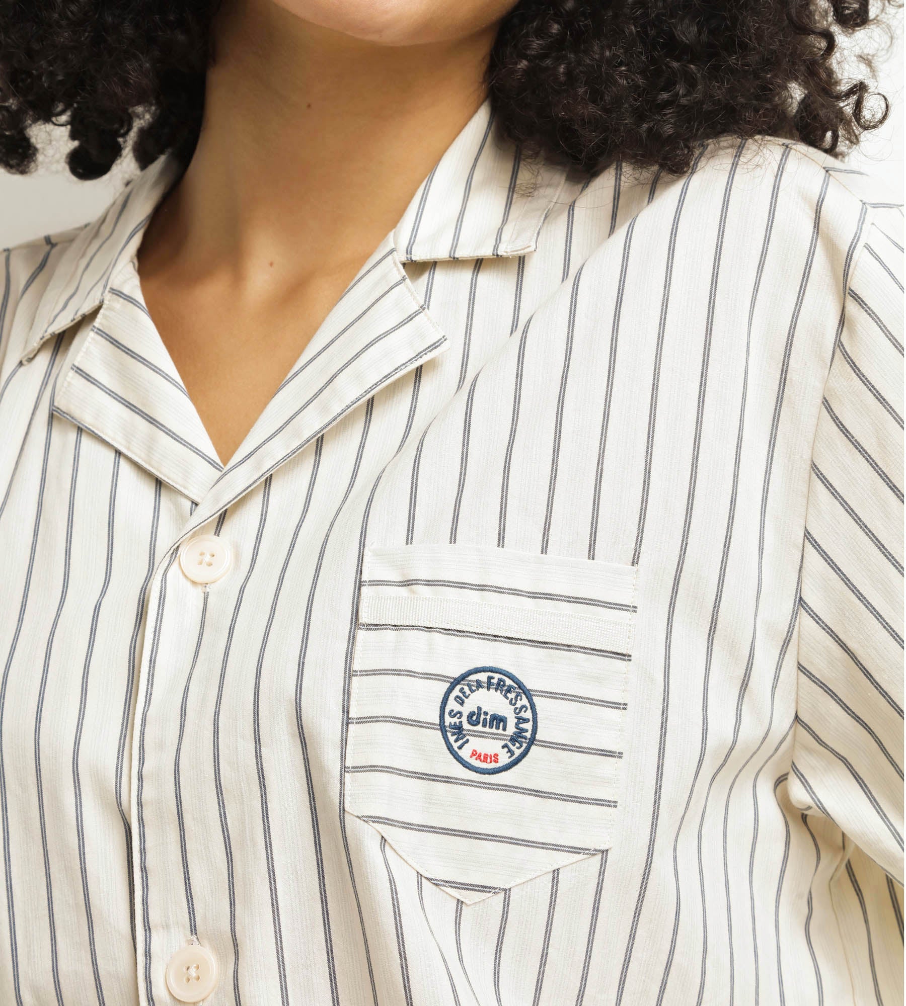 Verbinden Sie Komfort und Eleganz mit dem Pyjama-Set für Frauen Dim x Ines de La Fressange aus Popeline Grau & gestreift.