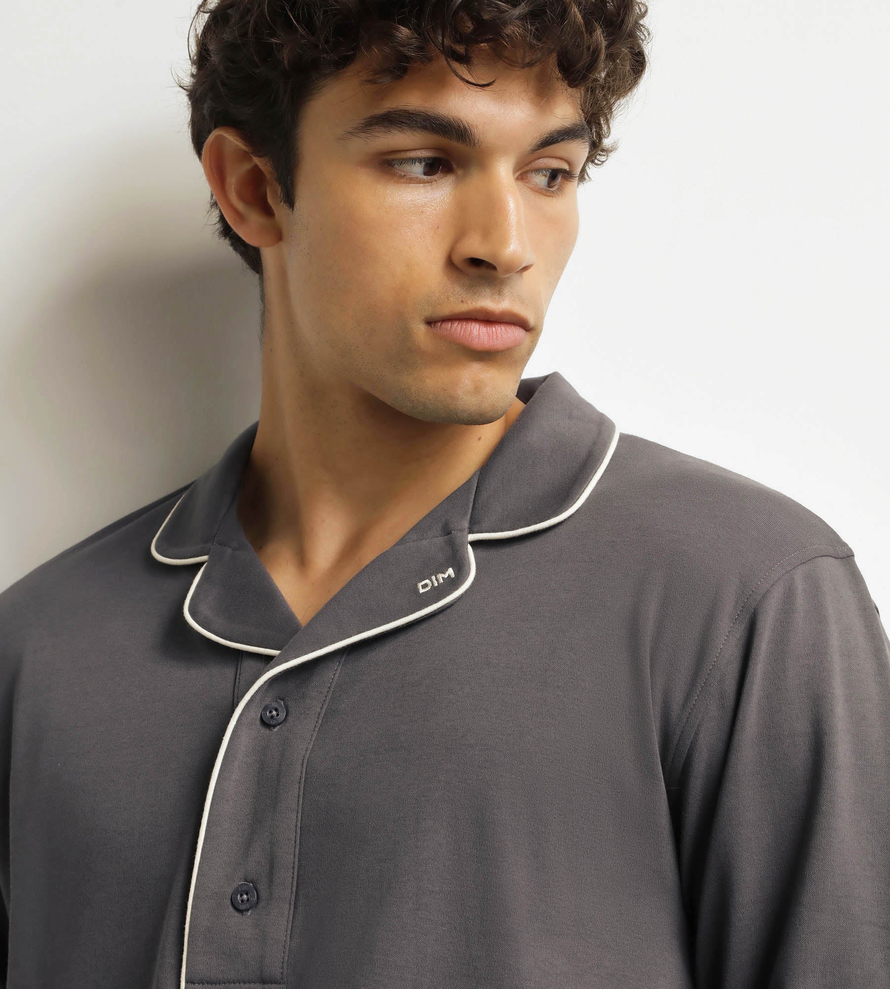 Entscheiden Sie sich für den Herrenpyjama von Dim aus dunkelgrauer Interlock-Baumwolle, der gemütlich und elegant zugleich ist.