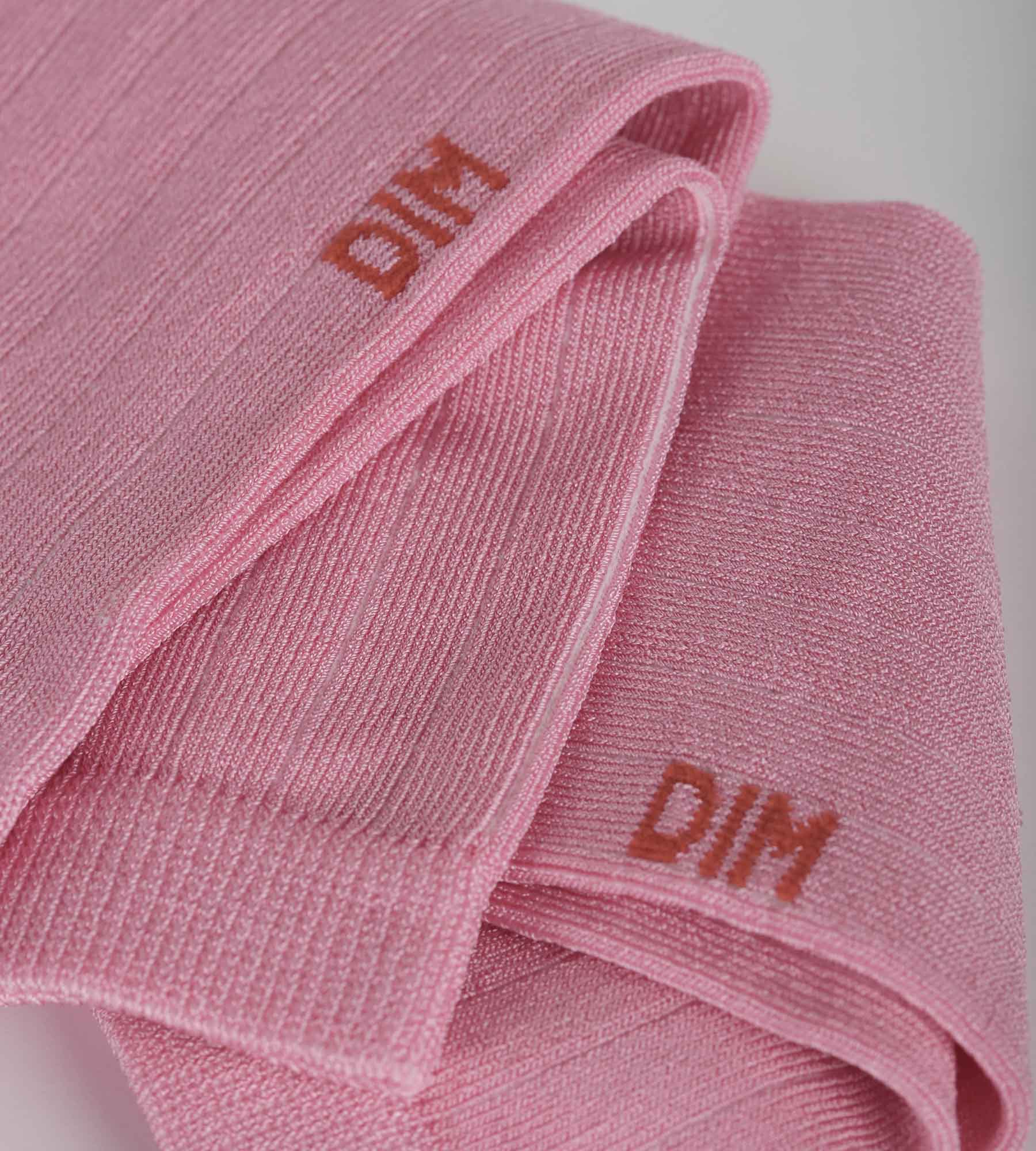 Sammle alle Farben der Baumwollsockenlinie Dim Mode, von neutralen Elfenbeintönen bis hin zu kräftigeren Akzenten in Dahlia, Violett und Blau.