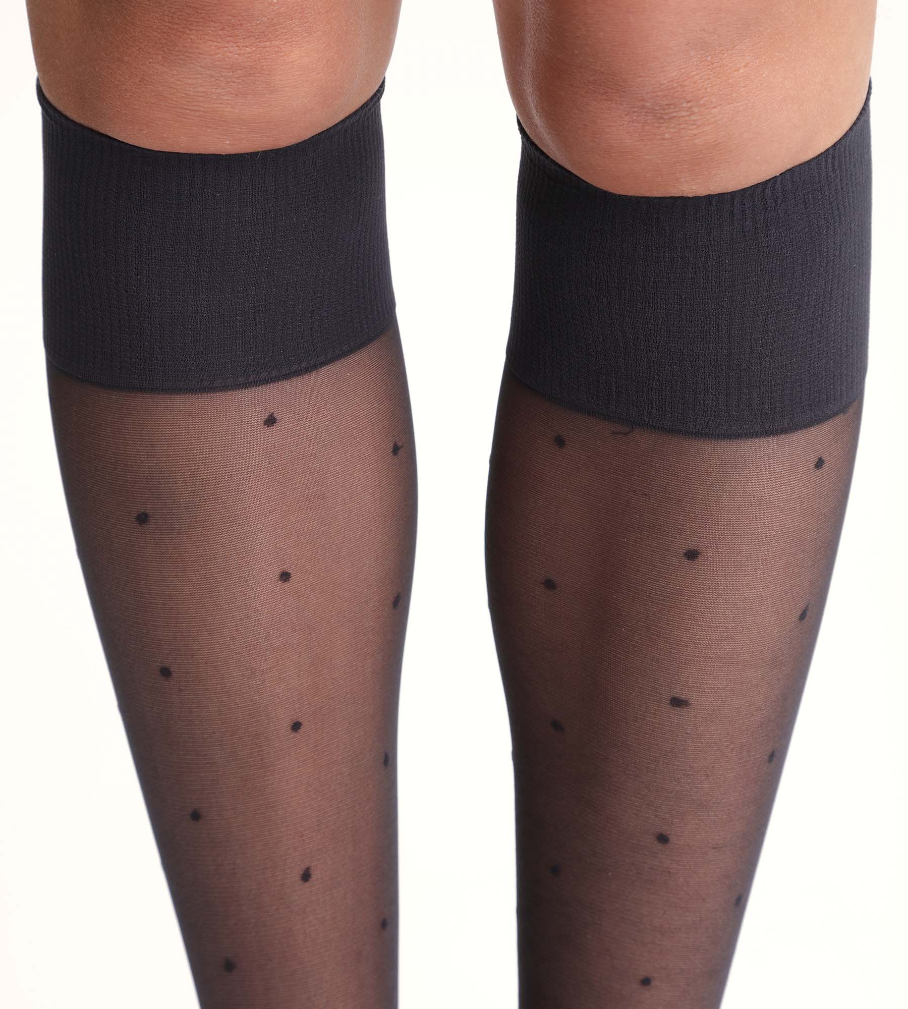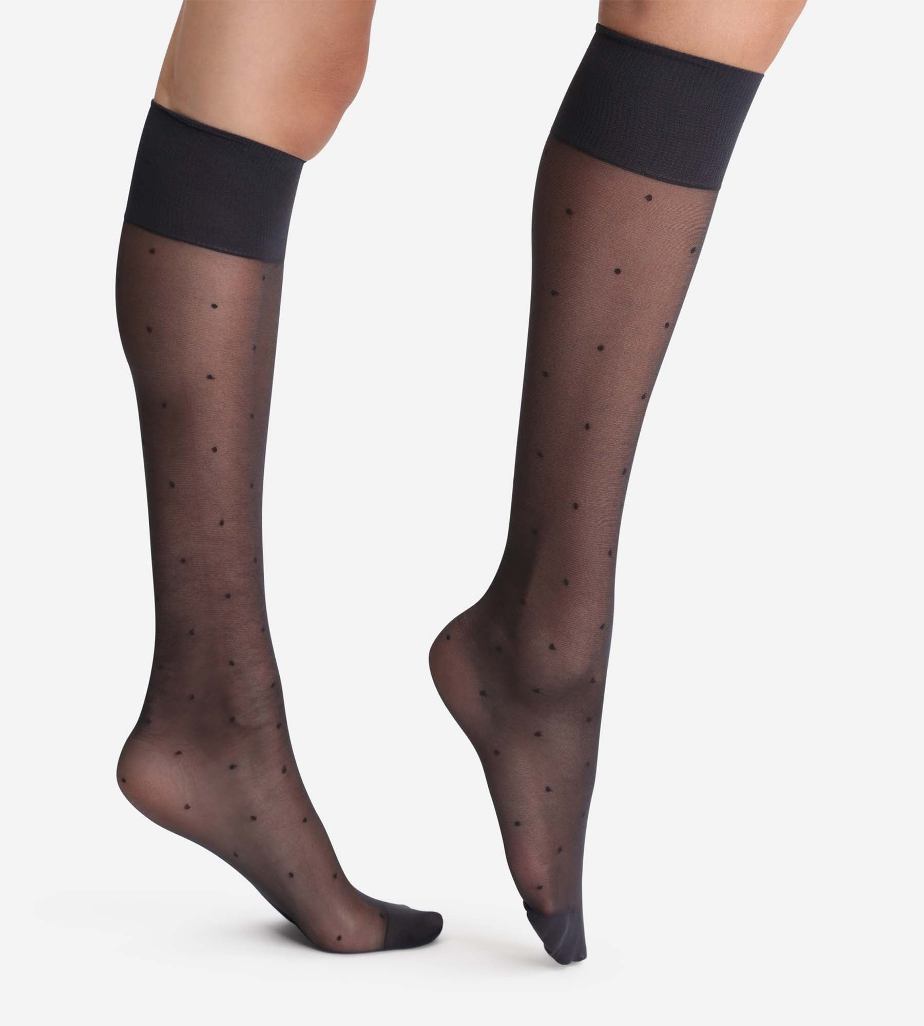 Schwarze Kniestrümpfe mit Punktmuster 15D - Madame So DIM
