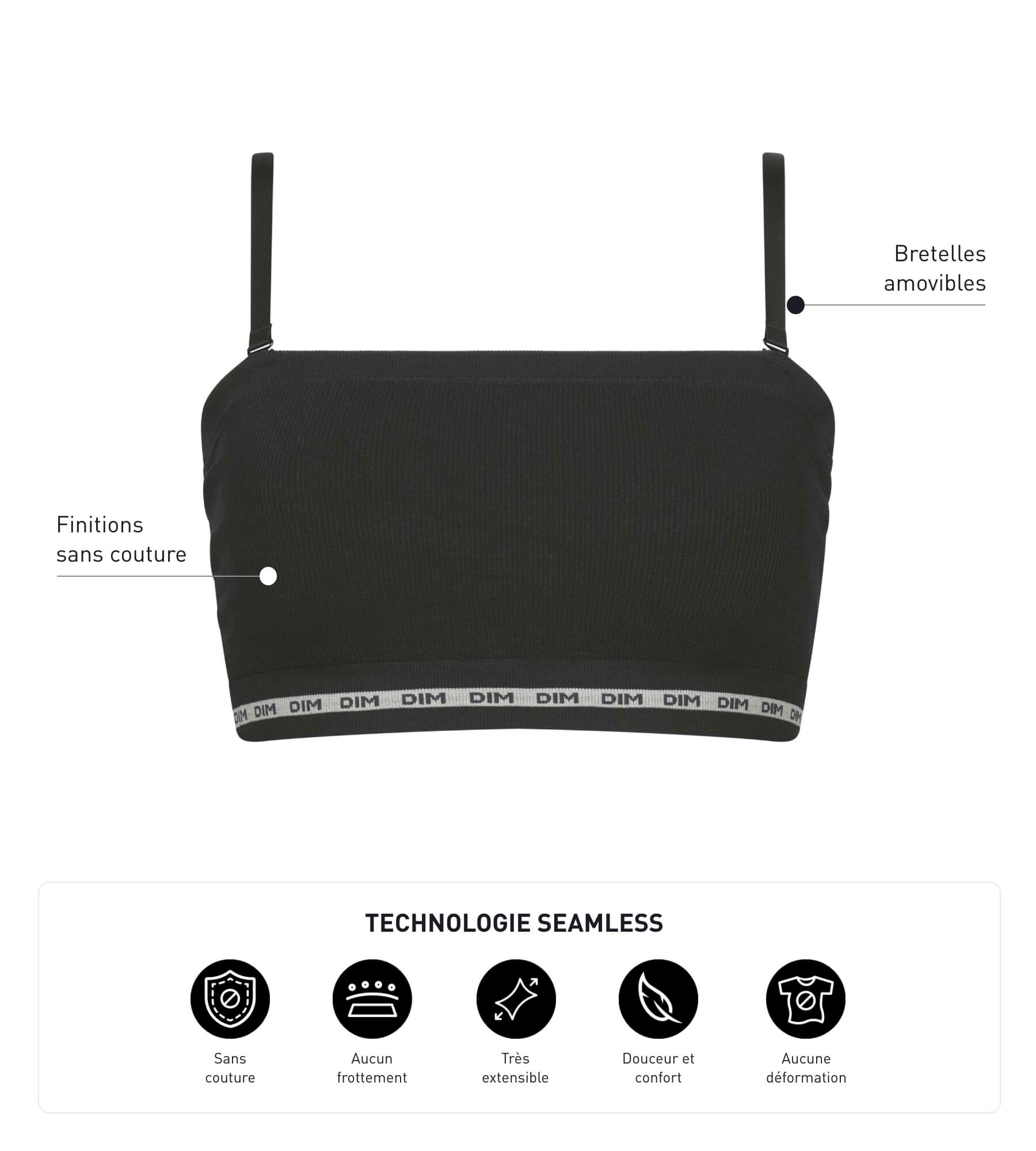 Schwarzer Bandeau-BH aus gerippter Mikrofaser - Icons Seamless