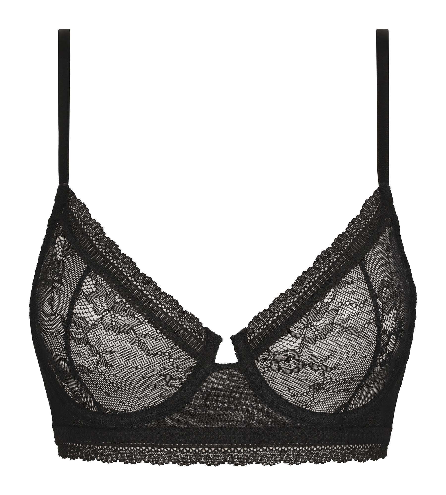 Schwarzer Bügel-BH aus floraler Spitze – Dim Romance