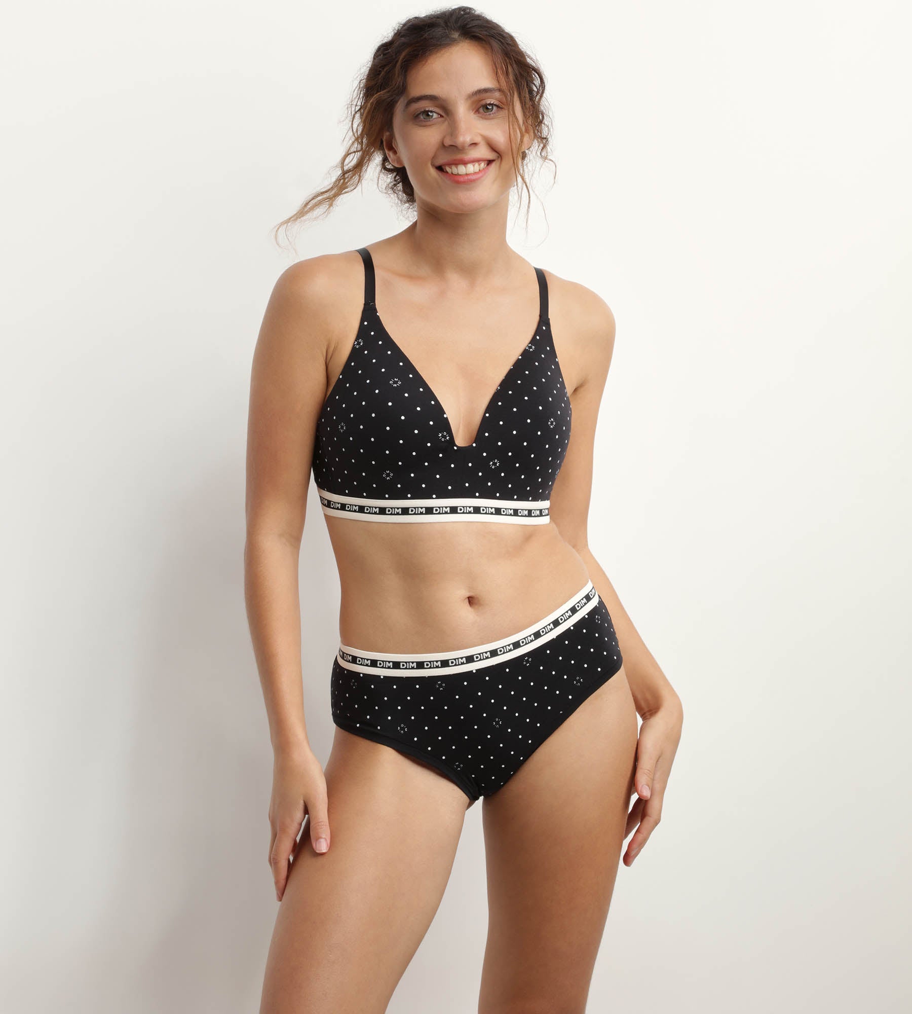 Schwarzer wattierter Triangel-BH aus gepunkteter Modalbaumwolle - Icons Essentiel