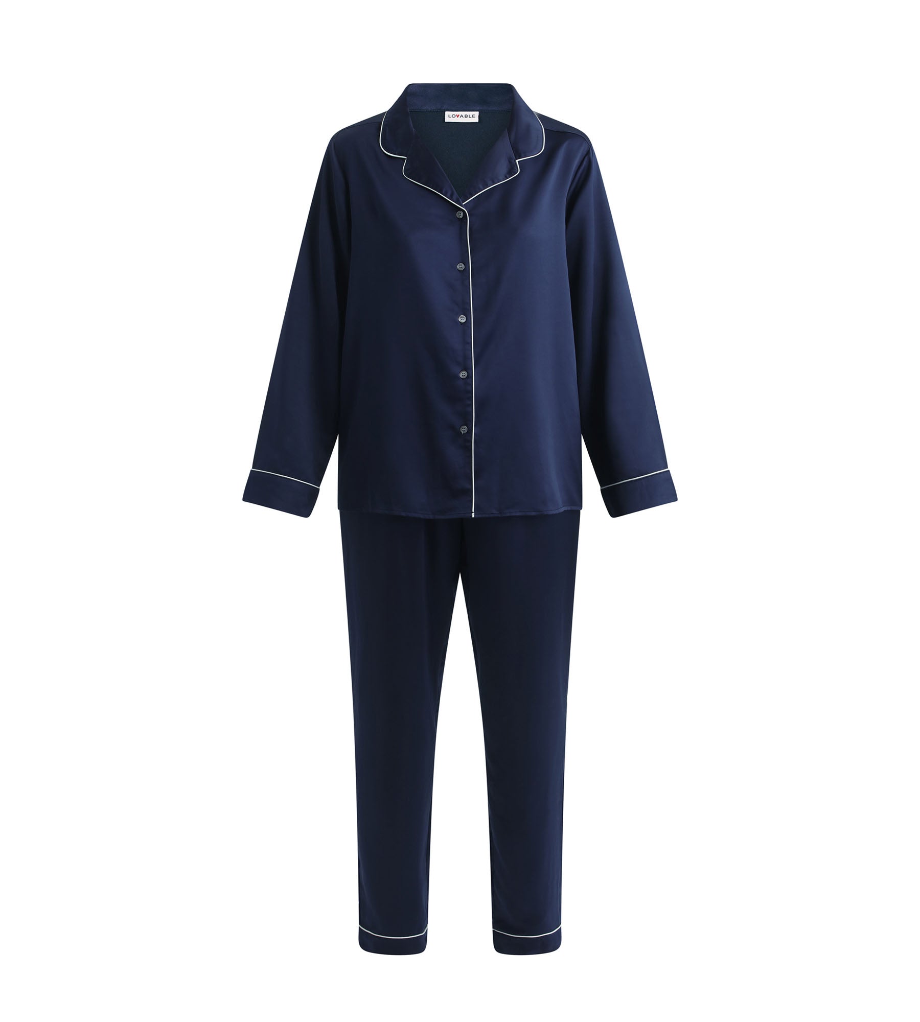 Schlagen Sie zu für die lässige Eleganz des Damen-Pyjama-Sets Dim Don't Disturb aus mitternachtsblauem Jersey.