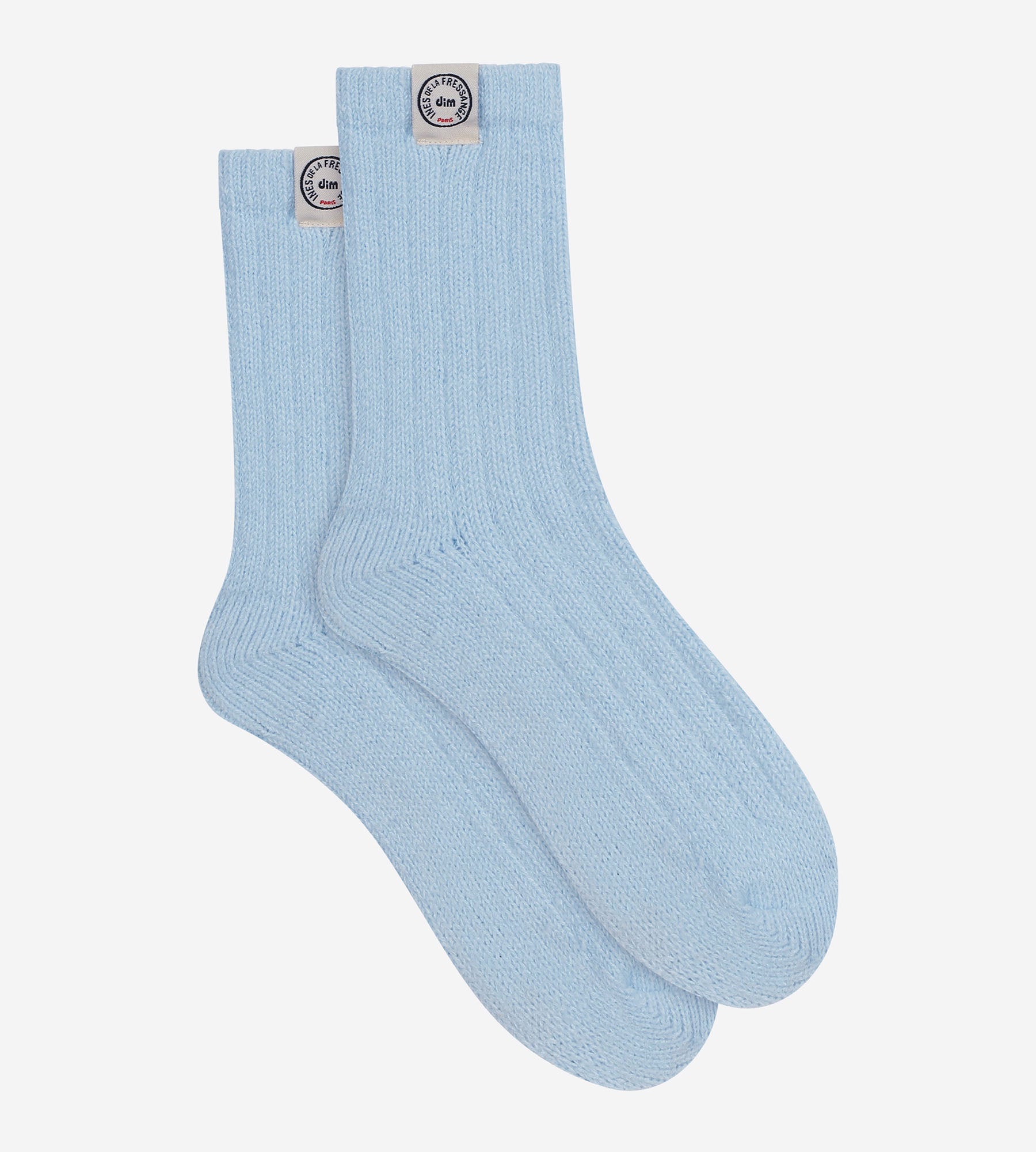 Die Dim x Inès de La Fressange Socken für Damen, die aus einem ultra-kokonigen Strick mit zarter Rippenoptik gefertigt sind, begleiten Ihre Outfits durch die Jahreszeiten und sorgen für ein angenehm warmes Gefühl. In der Farbe Bleu Chemise verleihen sie sowohl Ihren urbanen Looks als auch Ihren Homewear-Outfits eine frische Note. Das von Dim x Inès de La Fressange signierte Finish veredelt dieses einfache und gepflegte Modell. Ein leicht zu tragendes Essential mit einem selbstbewussten Stil.