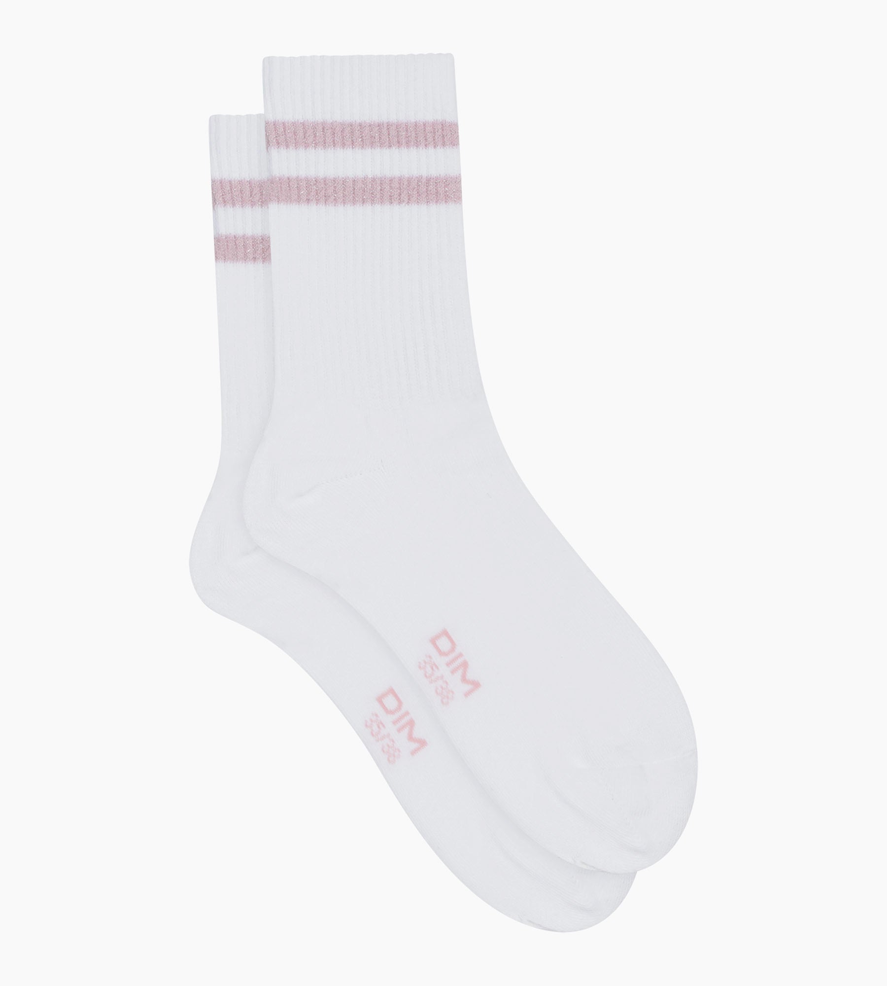 Die Damen-Socken aus gerippter Baumwolle von Dim Mode in strahlendem Weiß mit rosa Lurex verbinden Weichheit, Komfort und Feminität in einem sportlich-schicken Stil.