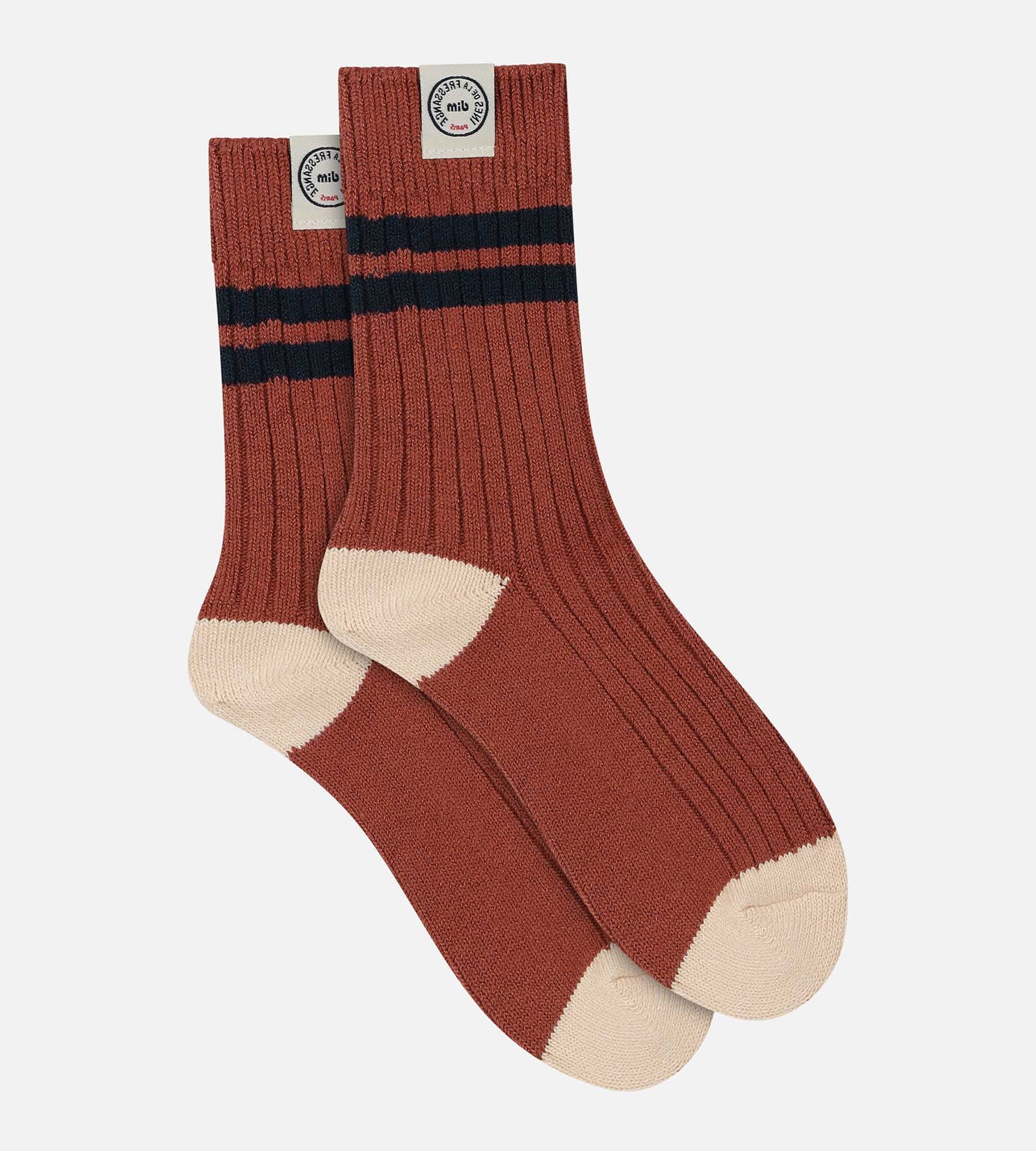 Zeige einen weichen Colorblock-Stil mit den Dim x Ines de La Fressange Damen-Socken aus brauner Viskose.