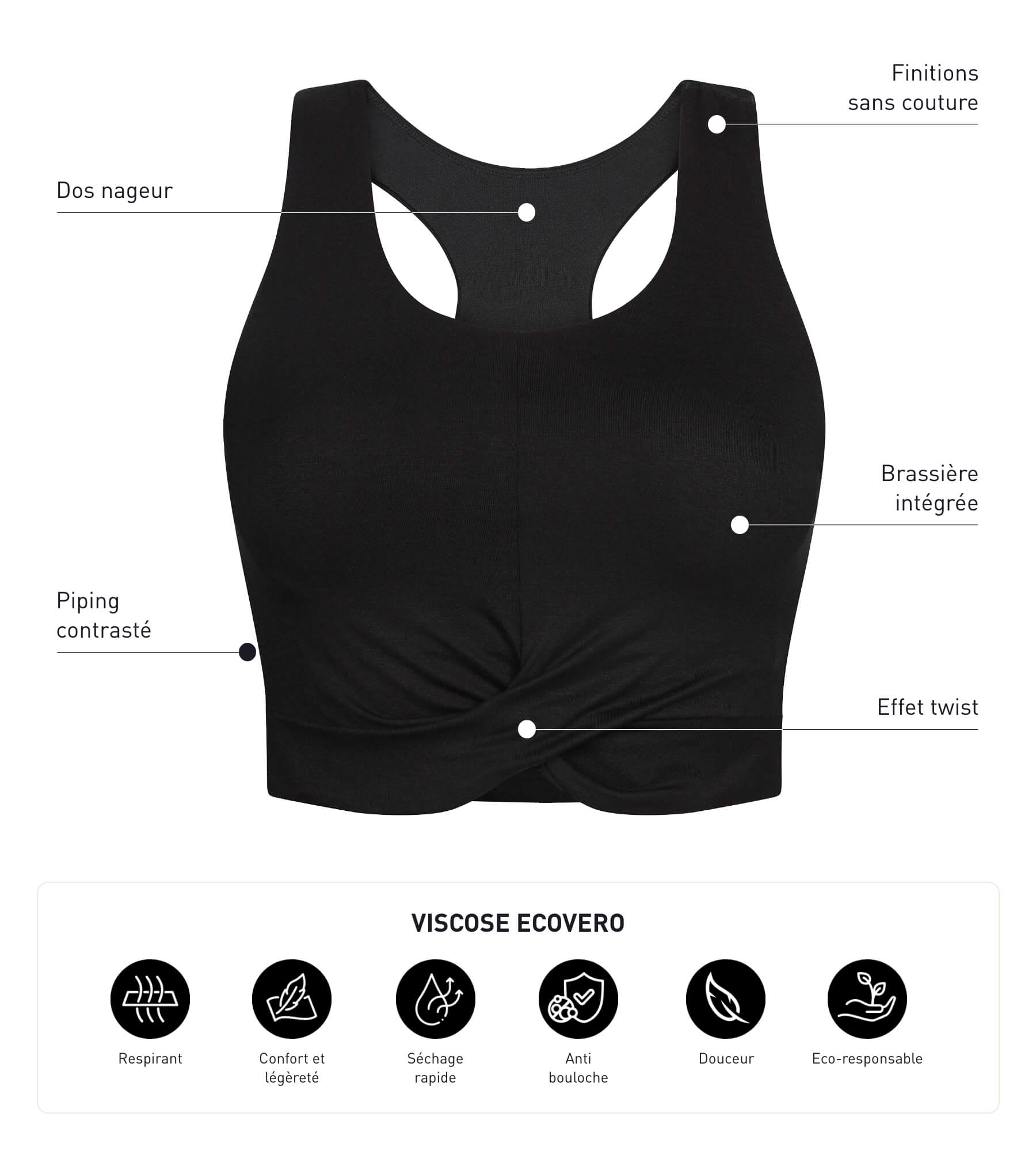 Sport-Tanktop für Damen aus schwarzer Viskose mit BH Dim Move