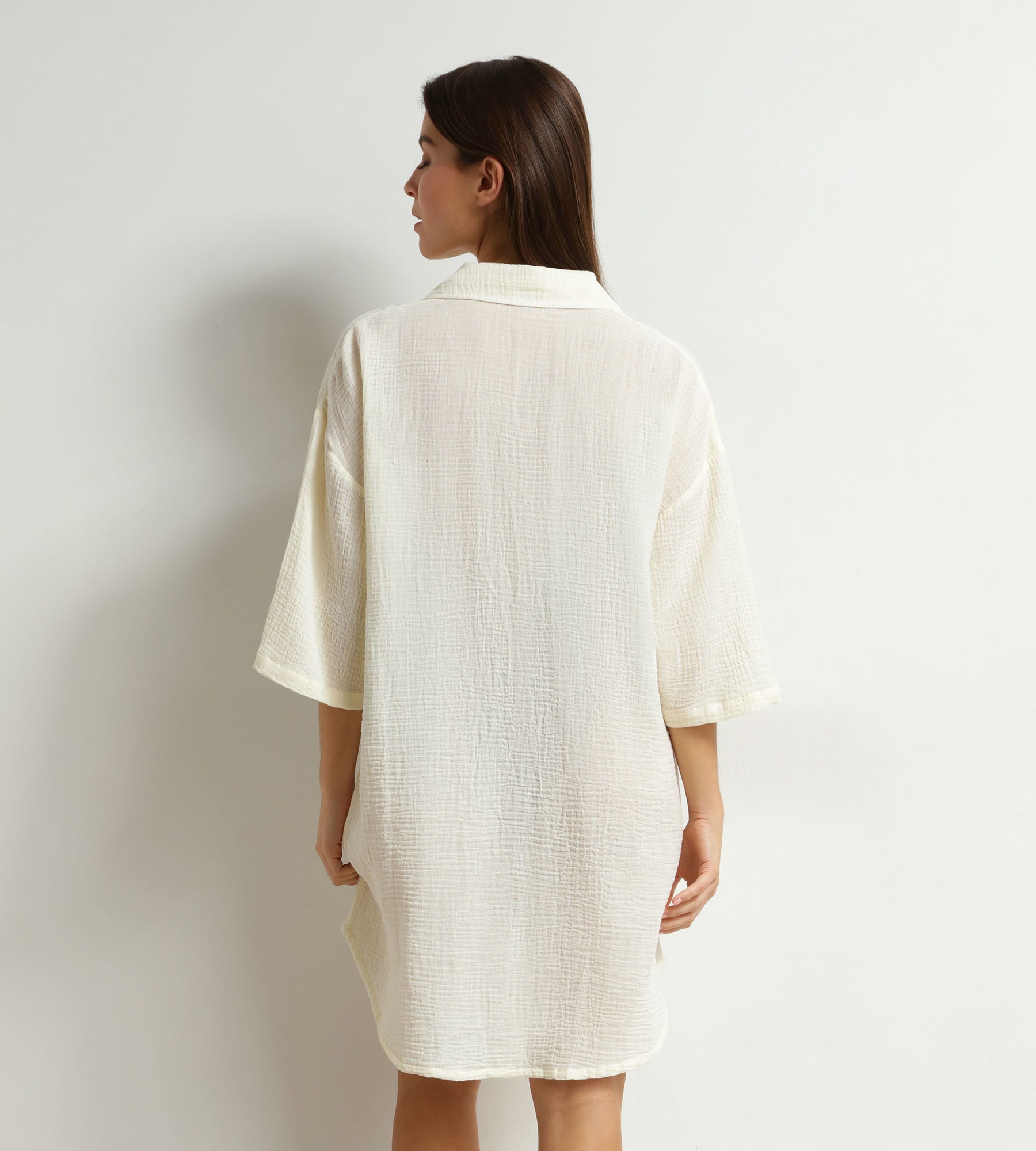 Leicht und vielseitig: Das Hemdkleid aus cremeweißer Baumwollgaze von Dim Swimwear wird zu deinem besten Freund im Sommer.