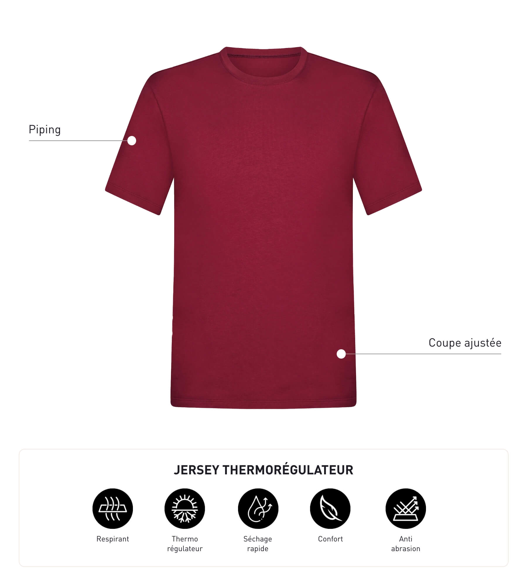 Thermoregulierendes Sport-T-Shirt für Herren aus Bordeaux-Dim-Move-Jersey