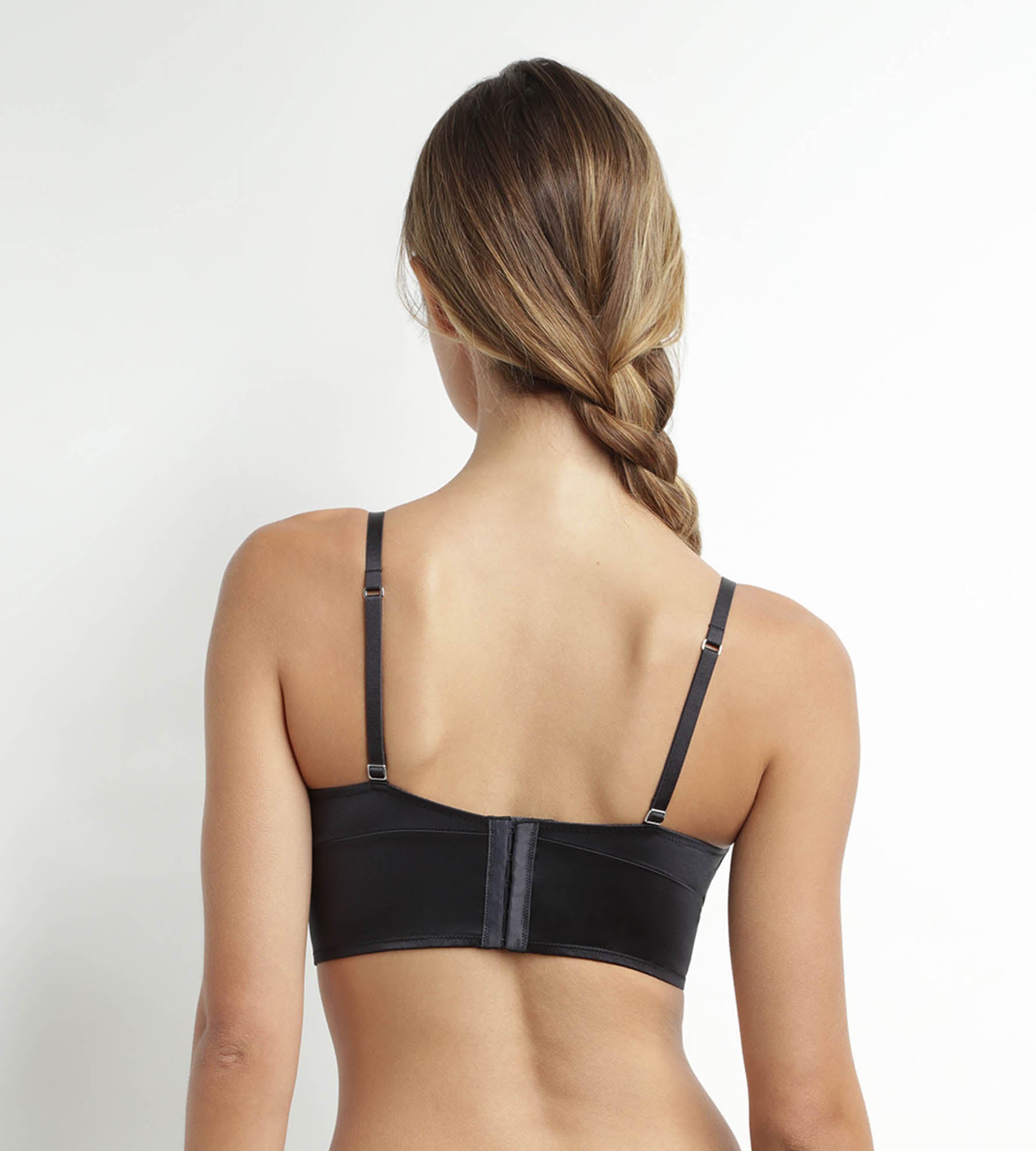 - Den V-Ausschnitt ohne Bügel, der eine subtile Formung ermöglicht.