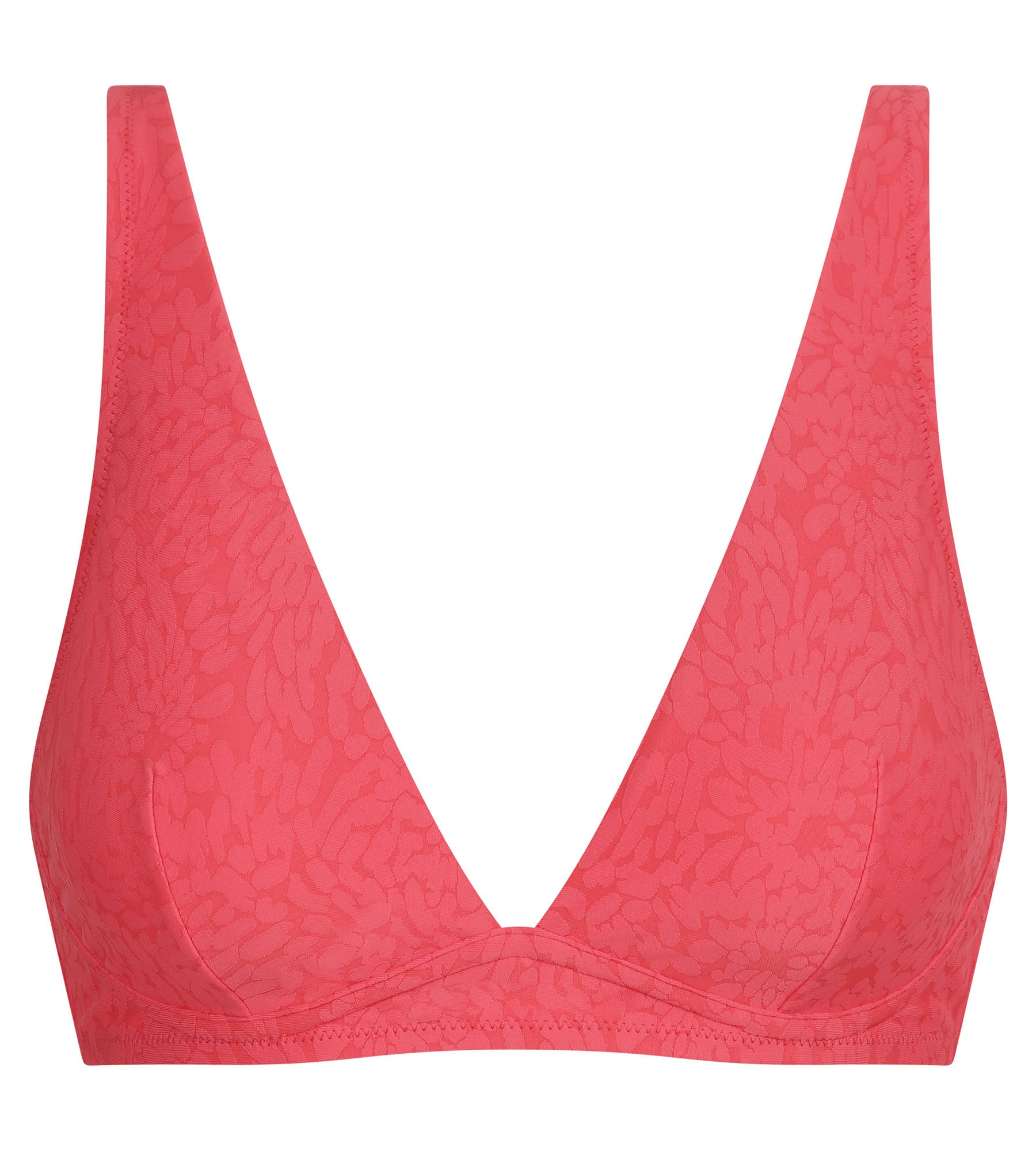 Mit seinem lebhaften Muster, seiner blumigen Farbe und seinem bügellosen Triangel-Schnitt verleiht dieses Bikini-Oberteil von Dim Swimwear der Silhouette frische Energie.