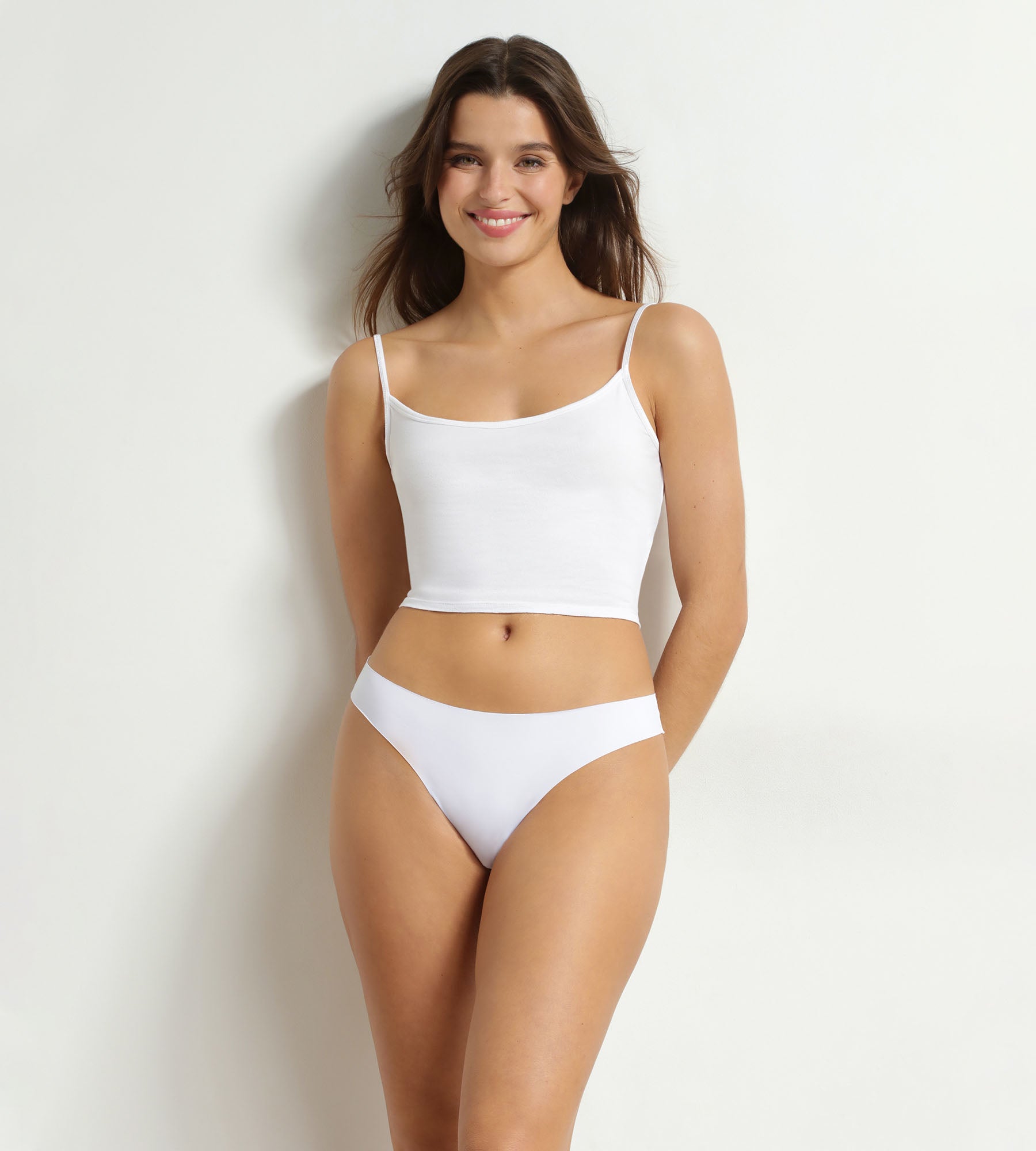 Bewegen Sie sich frei unter Ihren Sommerkleidern mit dem unsichtbaren Damen-String Dim aus weißer Mikrofaser.