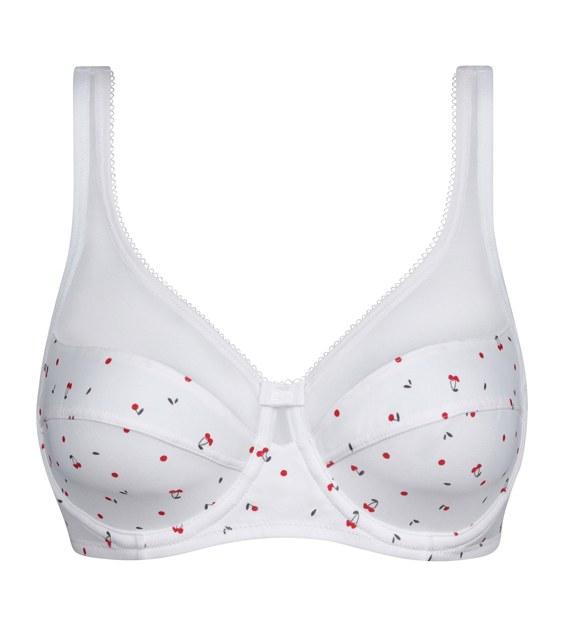 Weißer Bügel–BH mit Tülleinsätze und Kirschmuster – Generous